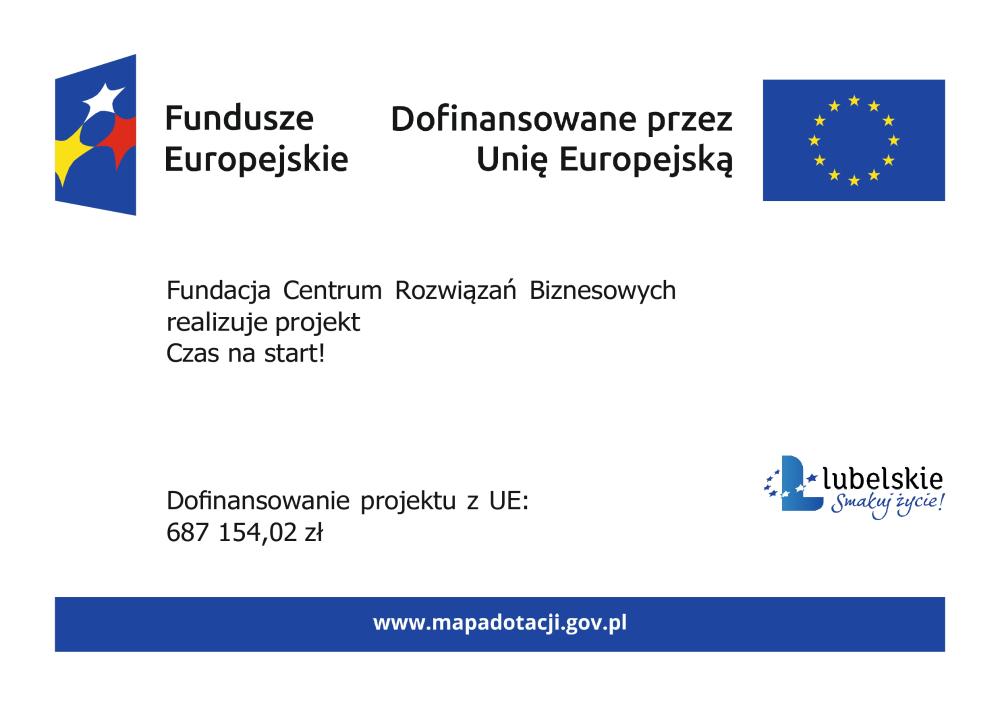 W związku z realizacją projektu pn. „Czas na start!” nr projektu: FELU.09.07-IP.02-001/23 w ramach Programu Fundusze Europejskie dla Lubelskiego 2021-2027, Priorytetu IX Zaspokajanie potrzeb rynku pracy, Działania 9.7 Outplacement, przekazujemy Państwu informację na temat powyższego projektu. Celem projektu jest zwiększenie zdolności do zatrudnienia u 20 osób (12K,8M) zamieszkałych (w rozumieniu KC) woj. lubelskie, zwolnionych z przyczyn niedotyczących pracownika w okresie do 6 miesięcy.